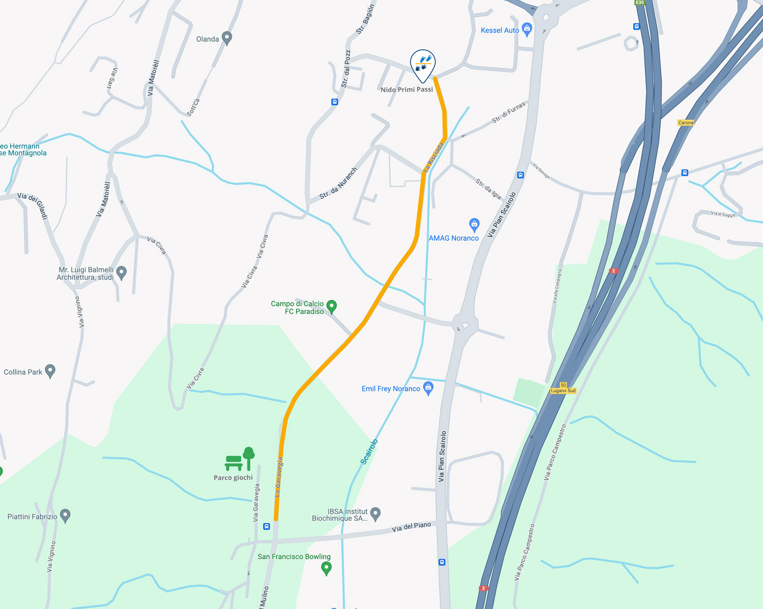Dal 2024 abbiamo aperto una linea Pedibus (ATA, Associazione Traffico e Ambiente), che ci permette di fare il tragitto tra il nido e il parco giochi in tutta sicurezza.